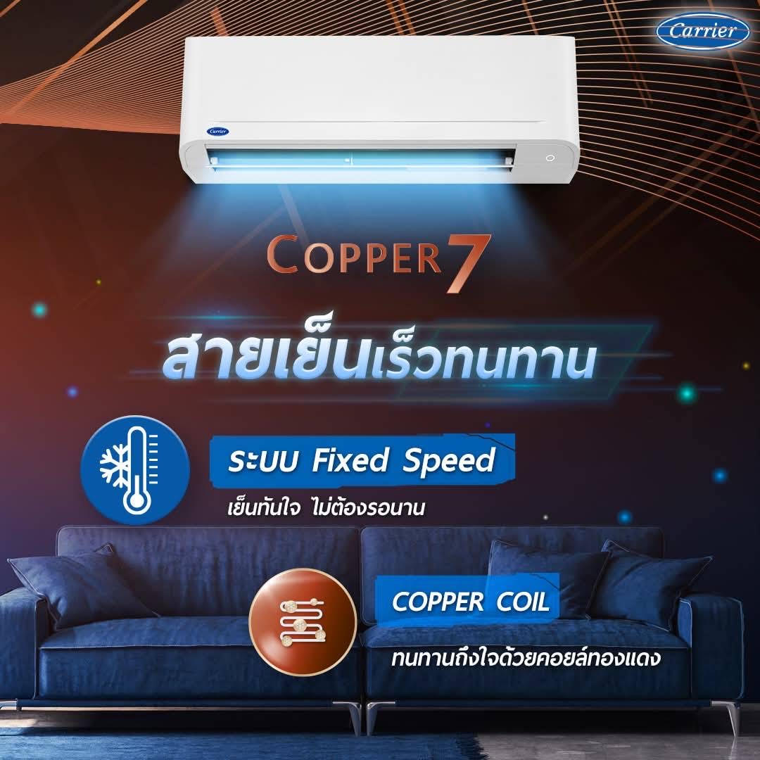 แอร์ Carrier FIX SPEED รุ่น Copper7 รุ่นใหม่ล่าสุดปี 2025 น้ำยาR32